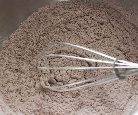 ボウルに米粉、砂糖、きなこ、ココアパウダー、ベーキングパウダーを入れて泡だて器で混ぜます。
