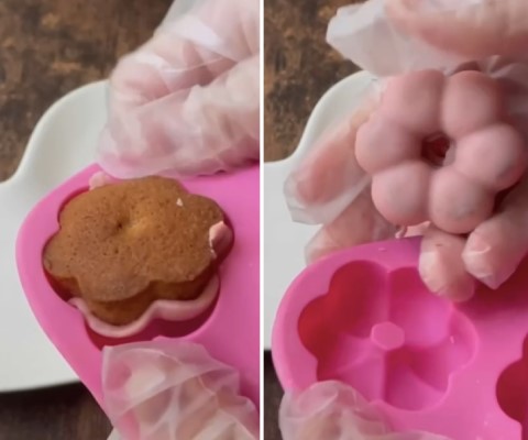 絞り出し袋に入れると型に入れやすくなります。