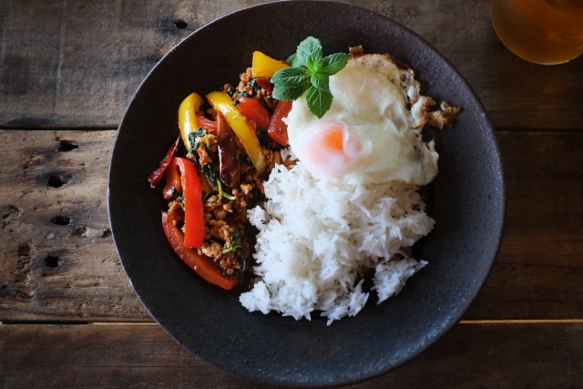 さらにビタミンB1の疲労回復パワーをアップさせるためにはアリシンという成分と一緒に摂ると吸収率がアップします。アリシンを含むのはにんにく、玉ねぎ、長ねぎ、らっきょうなどです。おすすめの使い方は炒め物などにナッツを入れること。例えば、タイ料理のガパオラオスは、豚ひき肉、パプリカやピーマンなどを炒めてご飯にのせたものです。にんにくを一緒に炒めて、仕上げに砕いたカシューナッツを加えると香ばしさが楽しめます。
