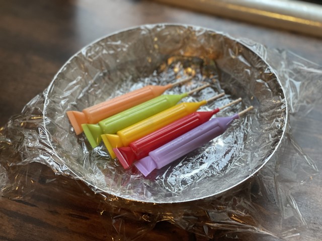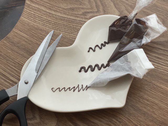 デコペンは、カットした先端から水が入ってしまうと、チョコがうまく絞り出せなくなります。