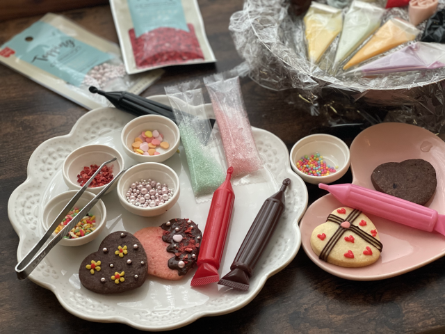 トッピング材料をいろいろ準備して、ハートクッキー作りはいかがでしょう。