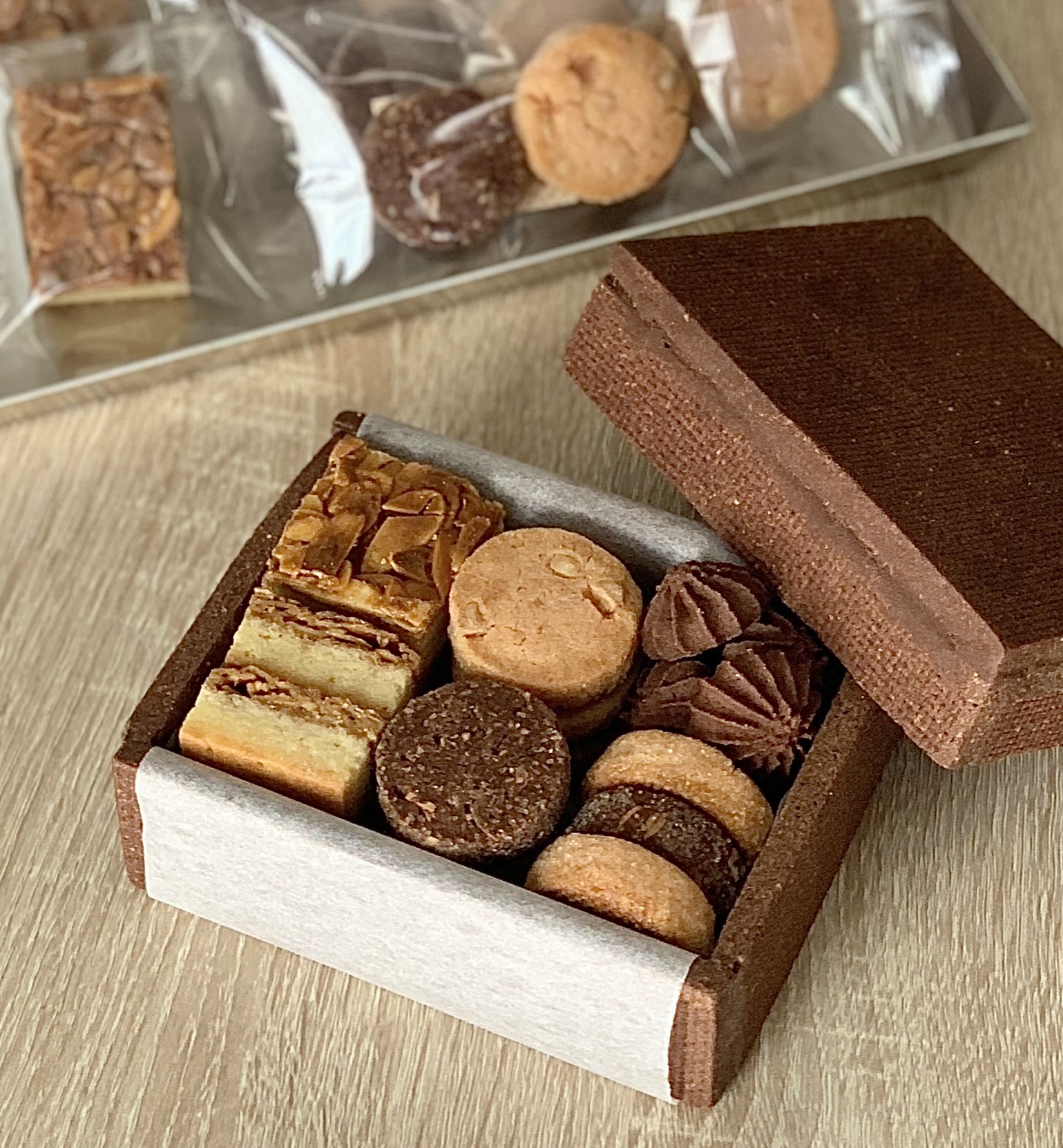 クッキーの厚さを薄くして、ガナッシュをたっぷり付けたことで、食べた瞬間口の中にチョコレートをめいいっぱい感じられるようにしました。また、トッピングにナッツやチョコレートペンを使用したことで見た目も楽しめる可愛いクッキーにしました。