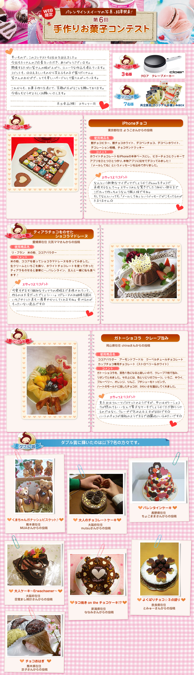 第59回バレンタイン&ホワイトデー手作りコンテスト結果発表