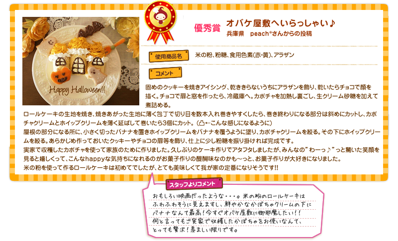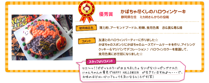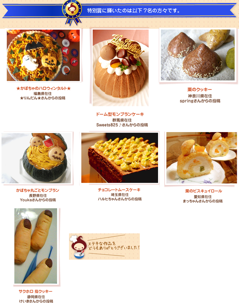 なんと言っても、食欲の秋!!バラエティーあふれる作品の投稿を頂き、ありがとうございます。 「今すぐ食べたい!」「うわっ!びっくり!!」「・・・爆笑!」などなど、いつもスタッフをワクワクドキドキさせて頂き、毎回楽しみなコンテスト。 さて、今回の結果はいかに・・・
