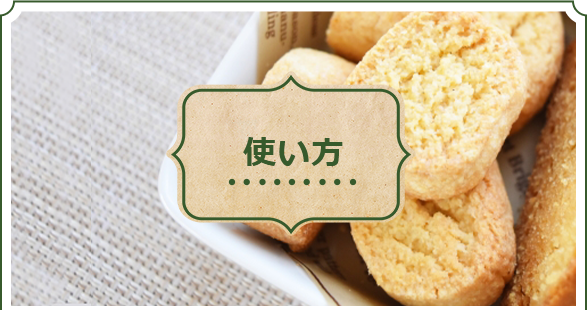 アーモンドクリームや焼き菓子の生地の練り込み、粉糖と合わせてマジパン作りなどに使います。焼き菓子の生地に加えるとアーモンドの風味やコクがぐーんと増します。