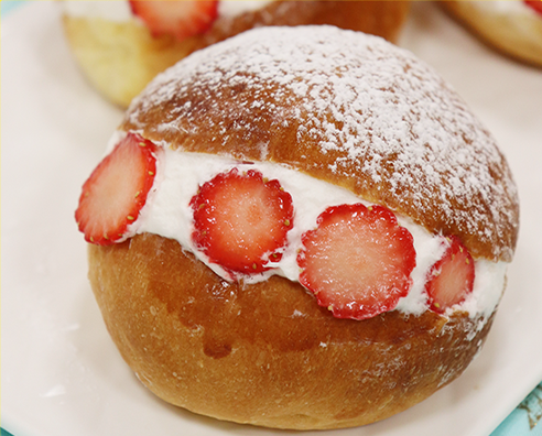 水の代わりに牛乳、またはスキムミルクを水と一緒に加え、パン生地をやわらかくし、ミルクの風味を出して、焼き色をよくします。