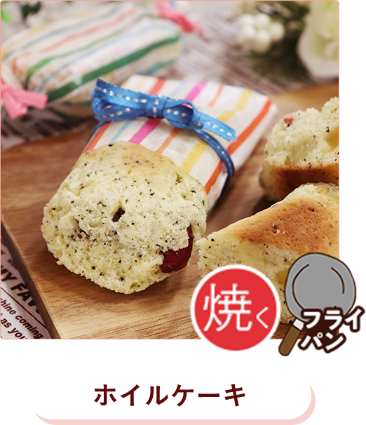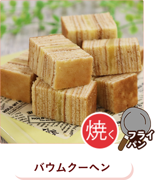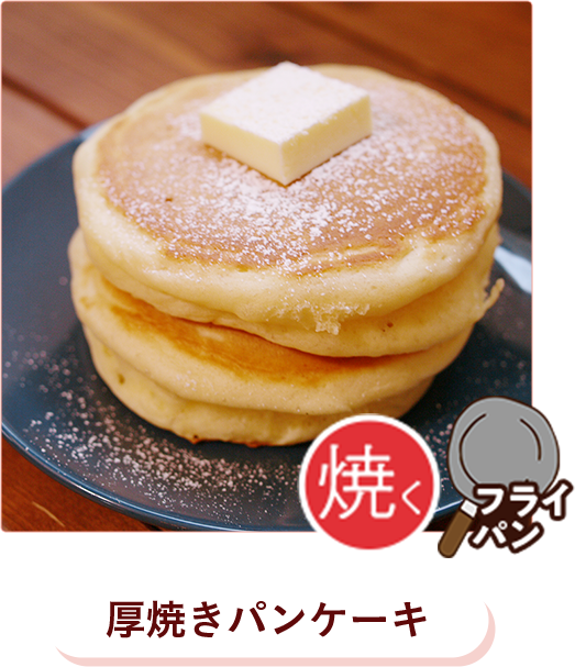 - ●フライパンや卵焼き器の材質や形状、コンロの種類や火加減により、焼き時間は異なります。膨らみや焼き色は状態を見ながら調節してください。
