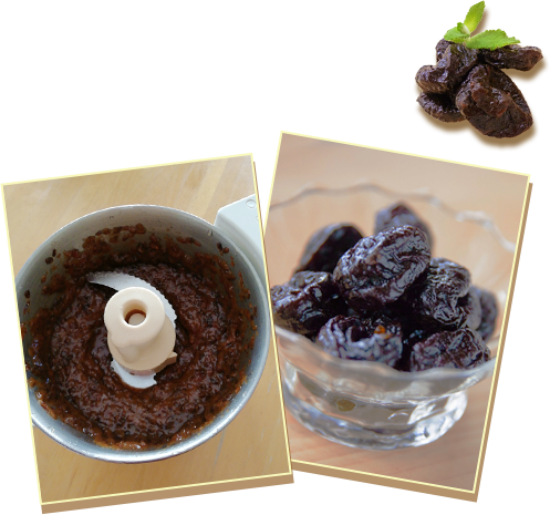 “プルーンピューレ”とは、ドライのプルーンに少しの水分を加えてピューレ状にしたものです。