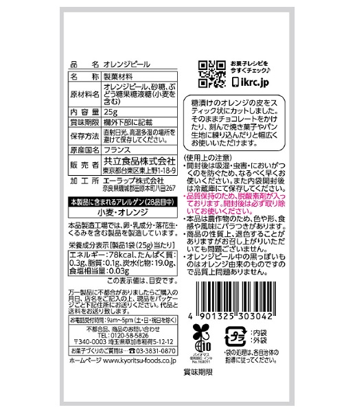 オレンジピール、砂糖、ぶどう糖果糖液糖(小麦を含む) |