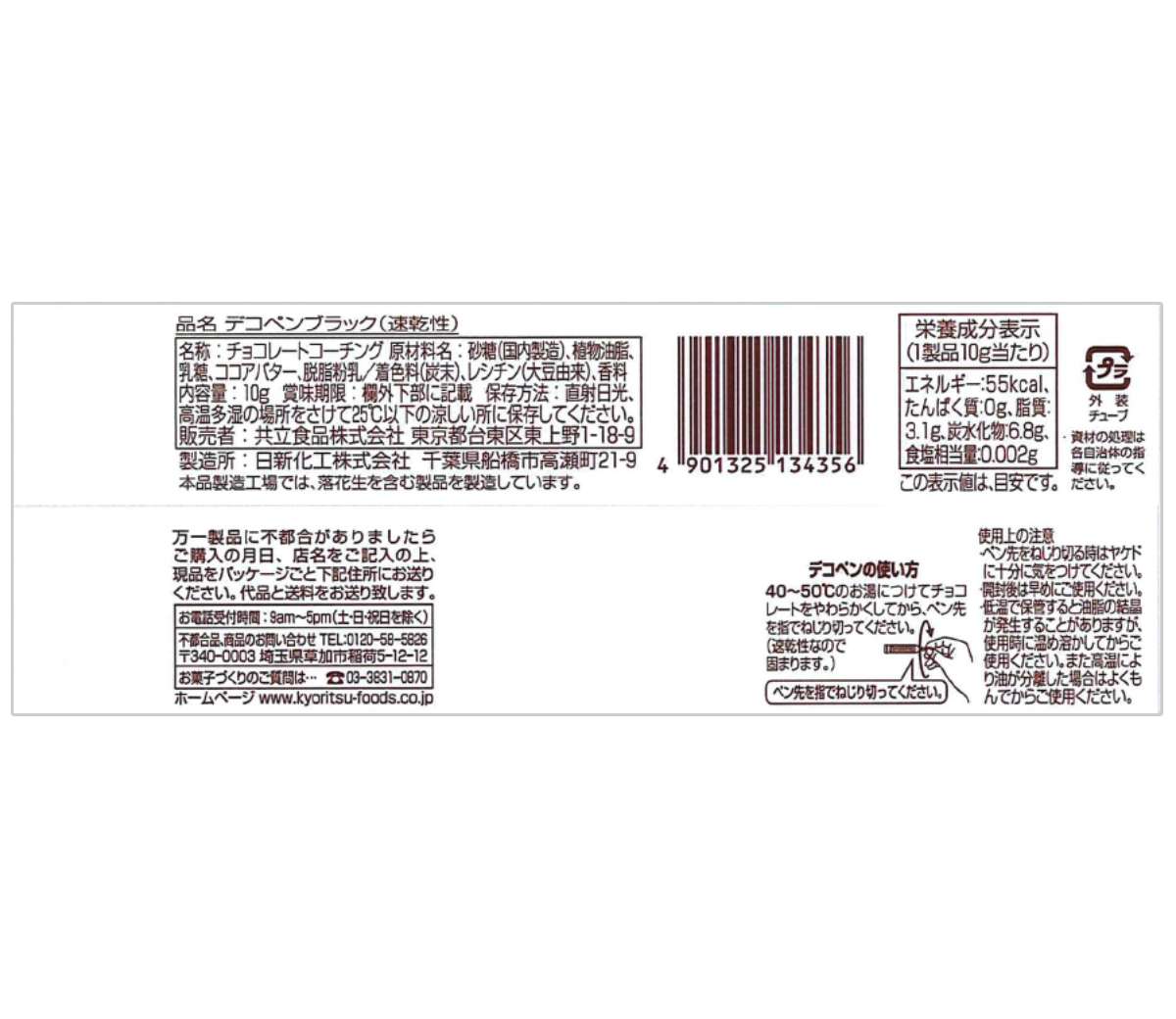 砂糖(国内製造)、植物油脂、乳糖、ココアバター、脱脂粉乳/着色料(炭末)レシチン(大豆由来)、香料 |