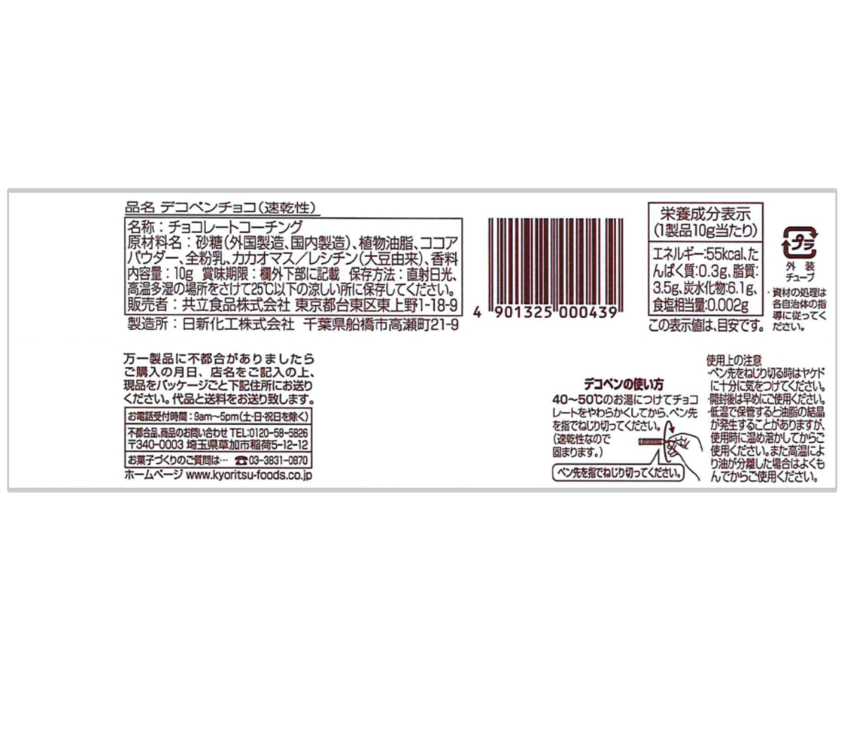 中のチョコレートは速乾性なのですぐに固まるタイプです。クッキーなどのデコレーションに最適です。オーブン用シート等にイラストを描いて冷やせばオリジナルのチョコレート飾りが作れます。 |