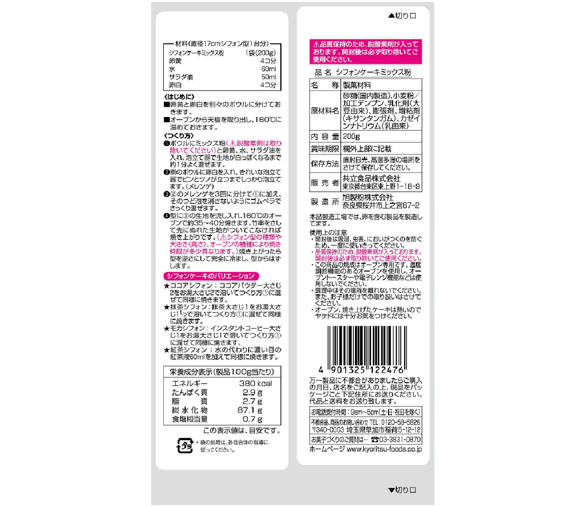 砂糖(国内製造)、小麦粉/加工デンプン、乳化剤(大豆由来)、膨張剤、増粘剤(キサンタンガム)、カゼインナトリウム(乳由来) |