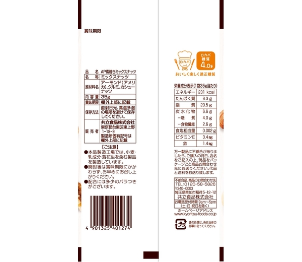 食塩・植物油不使用のミックスナッツ。 含有! |