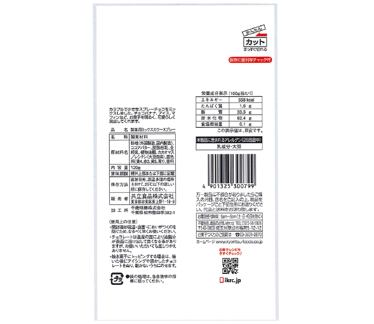 砂糖(外国製造、国内製造)、ココアバター、脱脂粉乳、全粉乳、植物油脂、カカオマス/レシチン(大豆由来)、着色料(黄4、赤3、黄5、青1)、香料 |