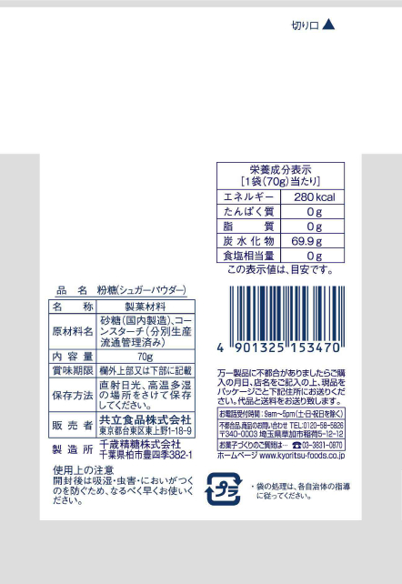 砂糖(国内製造)、コーンスターチ(分別生産流通管理済み) |