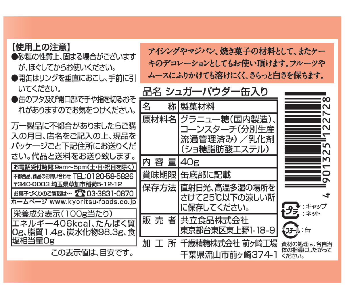 グラニュー糖(国内製造)、コーンスターチ(分別生産流通管理済み)/乳化剤(ショ糖脂肪酸エステル) |