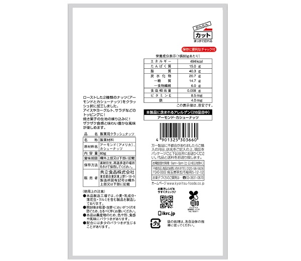 【本製品に含まれるアレルゲン(28品目中)】 アーモンド・カシューナッツ |
