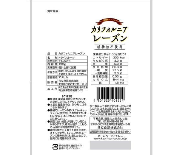 100gあたり:エネルギー333kcal、たんぱく質3.3g、脂質0.3g、炭水化物80.8g(糖質77.5g、植物繊維3.3g)、食塩相当量0.03g、カリウム844mg、鉄1.8mg |