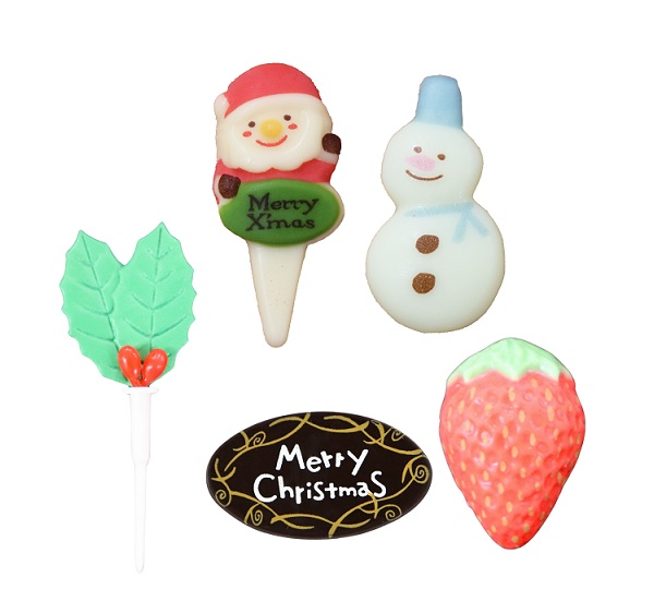 チョコレートでできたクリスマスのオーナメントのセットです。手作りケーキや市販のケーキにのせるだけで簡単にクリスマス感を演出できます。いちごのチョコはサクッと軽いエアインチョコ仕様になっています。