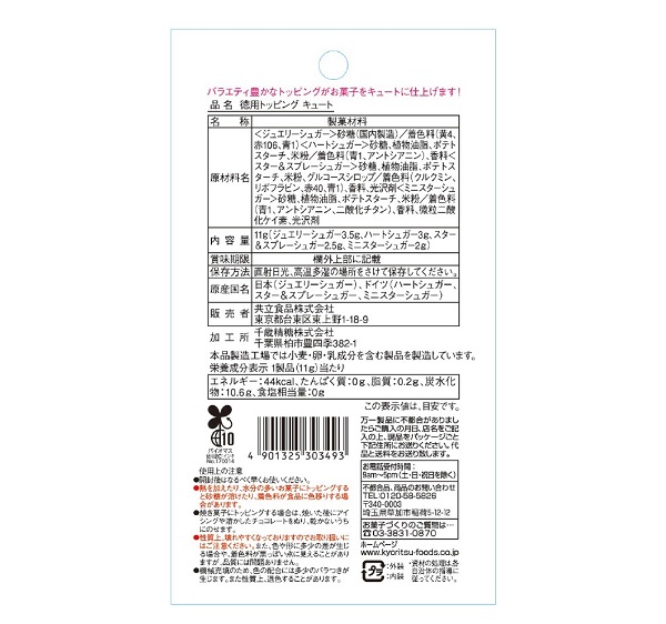 〈ジュエリーシュガー〉砂糖(国内製造)/着色料(黄4、赤106、青1) |