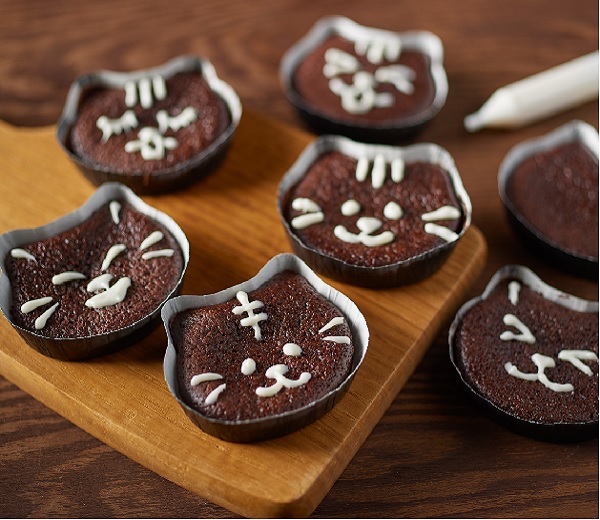 焼き型入りで簡単かわいい!デコペンで顔を描いてオリジナルのねこスイーツをつくろう! [出来上がり目安] 約5.5cm×7.5cm×高さ1.5cmのネコ型7コ分 [キット内容]