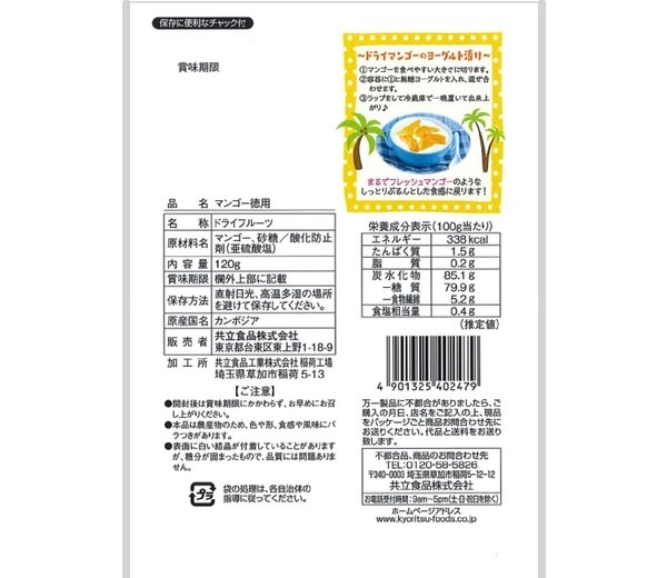 マンゴー、砂糖/酸化防止剤(亜硫酸塩) |