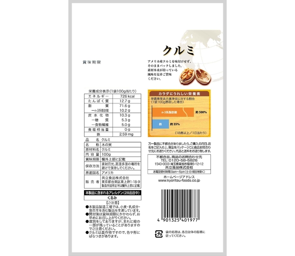 カリファルニアの広大な土地で育ったクルミをそのままパックしました。素材本来のおいしさをお楽しみいただけます。 |