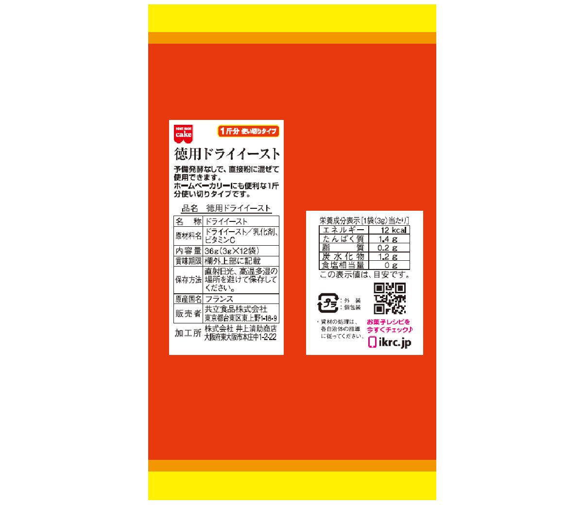 予備発酵なしで直接粉に混ぜて使用できます。 |