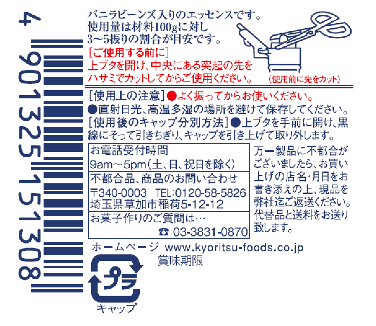 バニラエッセンスにバニラビーンズを加えた粒入りエッセンス。ケーキやクッキーなどあらゆるお菓子の香り付けに。 [バニラビーンズ(粒)入り]です。