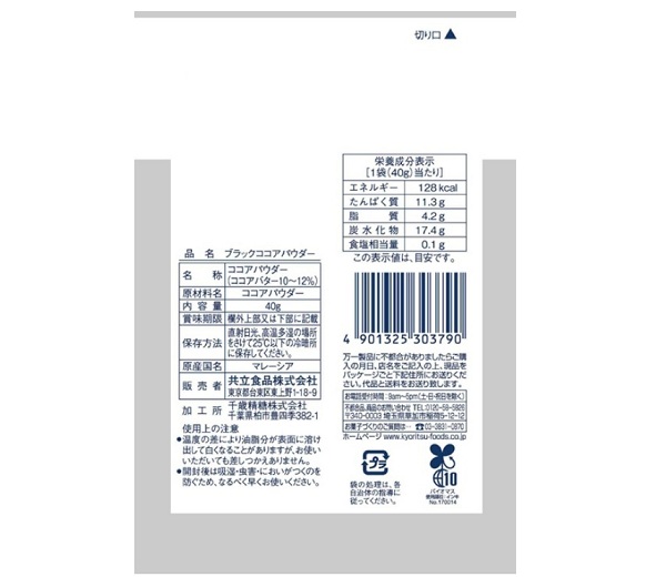 1袋(40g)当たり:エネルギー128kcal、たんぱく質11.3g、脂質4.2g、炭水化物17.4g、食塩相当量0.1g |