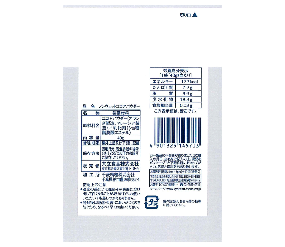 湿りにくく、さらっとした状態を保つココアパウダーです。 |