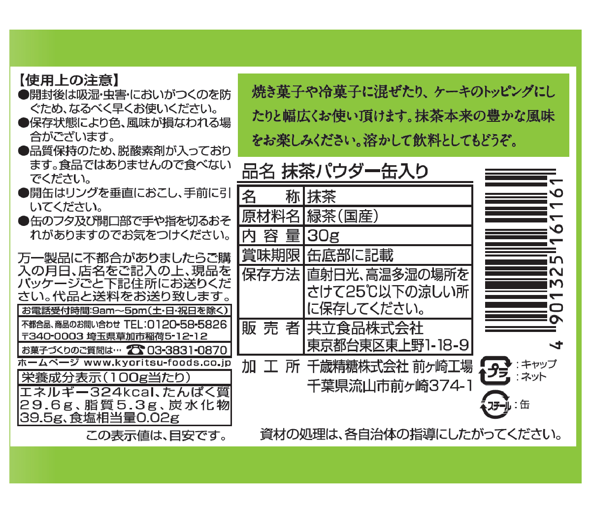 ふりかけ簡単、便利なネット付きの抹茶パウダーです。 |