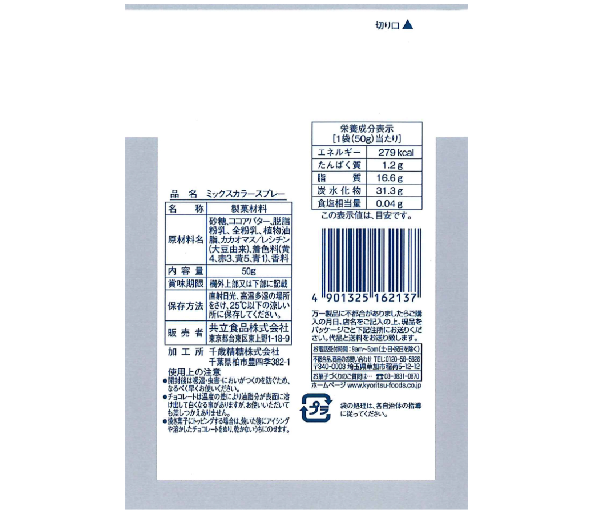 飾り付けに最適なカラフルなチョコです。ケーキやアイス、チョコバナナ、パフェなどにお楽しみ頂けます。 |