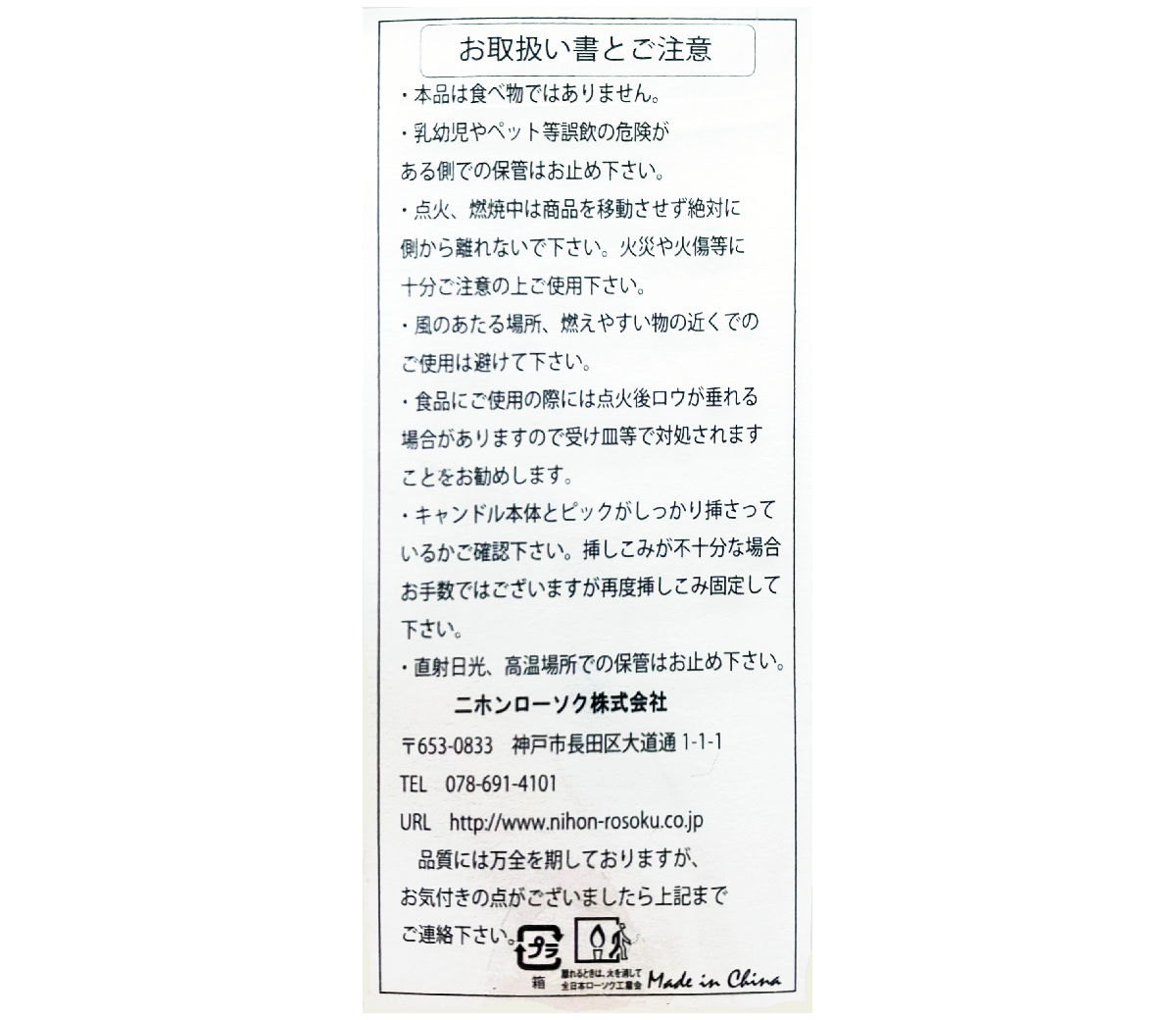 ・点火、燃焼中は商品を移動させず、絶対に側から離れないでください。火災や火傷等十分にご注意の上ご使用ください。 |