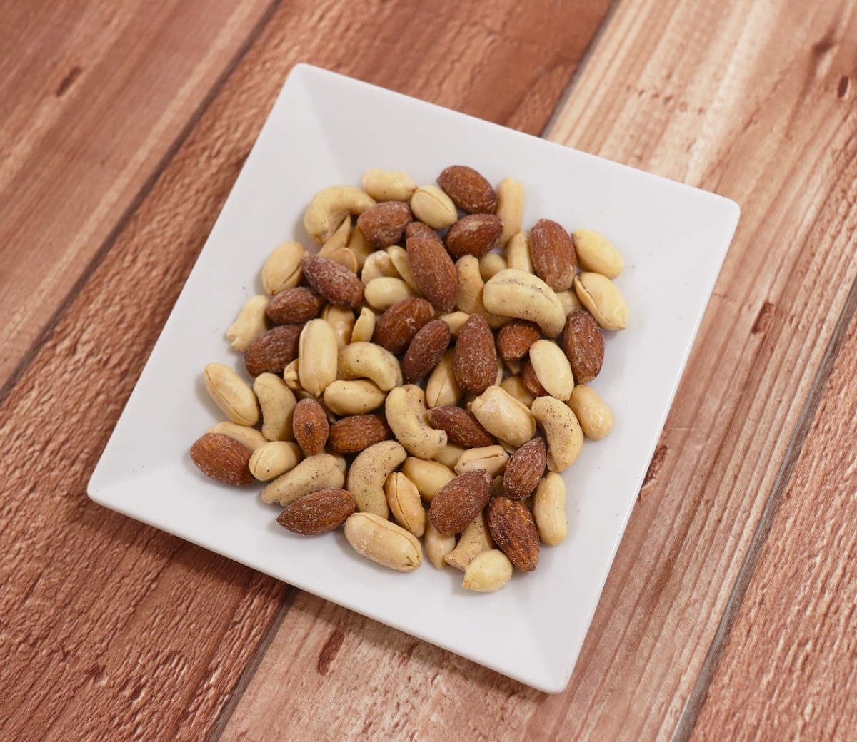 落花生(中国)、アーモンド、カシューナッツ、水飴、植物油、食塩、黒胡椒/調味料(アミノ酸等)、(一部に落花生・アーモンド・カシューナッツを含む) |