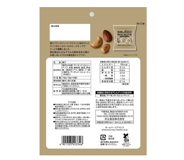 燻製ミックスナッツ スモーキーグリル&ペッパー6P |