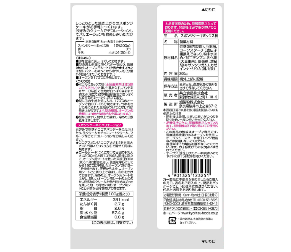 しっとり、ふんわりとした焼き上がりのスポンジケーキが手軽に焼き上がります。 |