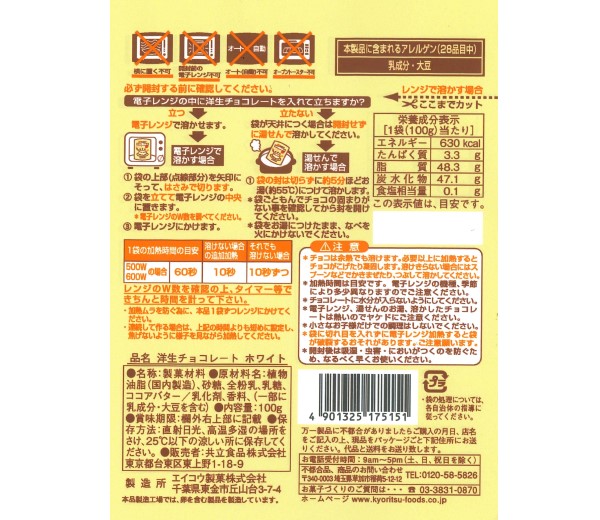 植物油脂(国内製造)、砂糖、全粉乳、乳糖、ココアバター/乳化剤、香料 、(一部に乳成分・大豆を含む) |