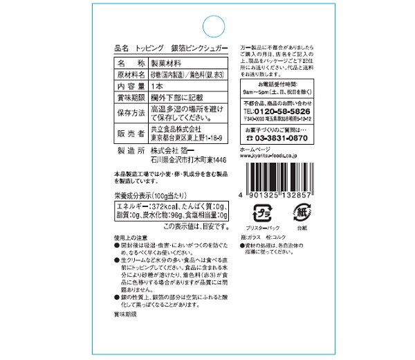 砂糖(国内製造)/着色料(銀、赤3) |