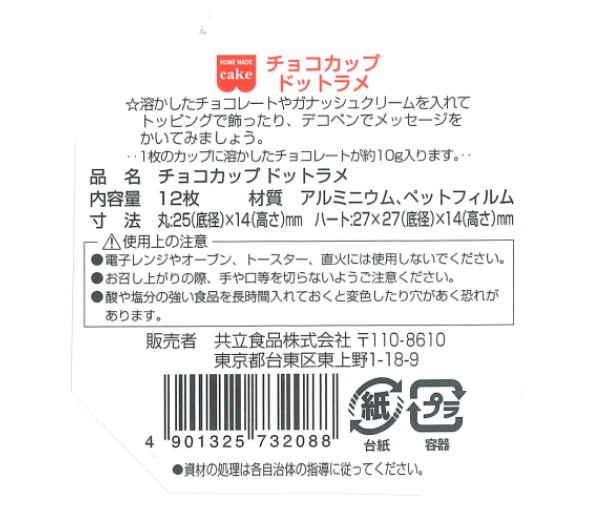 【ラッピング材】大小のドットが可愛いアルミカップです。溶かしたチョコレートやガナッシュクリームを入れてトッピングで飾ったり、デコペンでメッセージを描いたりしてお楽しみください。 [1枚のカップに溶かしたチョコレートが約10g入ります] |