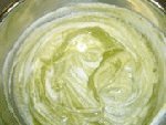 ●抹茶と卵黄は一緒に火に通すとくすんだ色になりやすいため、抹茶を熱湯でペースト状にしてから合わせると色も香りもきれいにでやすくなります。