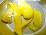 •  ドライマンゴをたっぷりの水(分量外)につけ、柔らかくなるまで戻します。(約2~3時間)