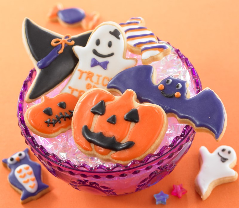 完全に冷めたクッキー生地にアイシングデコレをします。クッキー表面の外側にラインを入れてから内側をデコレするときれいに仕上がります。