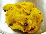 6に生クリームを様子を見ながら加え(かぼちゃの状態により固い場合や柔らかい場合は調整してください)、シナモンとレーズンを加え混ぜ、火を止めます。