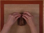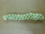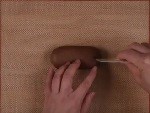【成形】茶色の小さい生地をつぶして、大小4か所にカードで切り込みを入れます。(矢車)