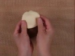 1を軽く押さえてガスを抜きます。それぞれ分割して(下記参照)きれいに丸め、ラップ材をして約10分休ませます。
