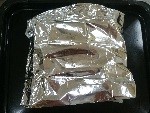 170℃に温めたオーブンで5分焼き、アルミホイルをかけて約15分焼き、冷まします。粗熱がとれたらシートごと取り出して、網の上で冷まし、冷めたら⑨の目を飾ります。