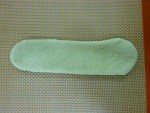 小さめの白生地を丸く伸ばし、鯉のぼりの尾ひれではないほうにのせ、白生地を裏までしっかりと包みます。