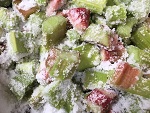 ルバーブを1~2cmに切って鍋に入れ、砂糖をまぶし、約30分置いておく。