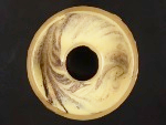 シフォン型に③を1/3位流し入れ、④の半量を回し入れる作業を2回繰り返し、最後に残りの③の生地を流し入れ、菜箸で「の」の字をかくように下から上に混ぜ、マーブル状にします。